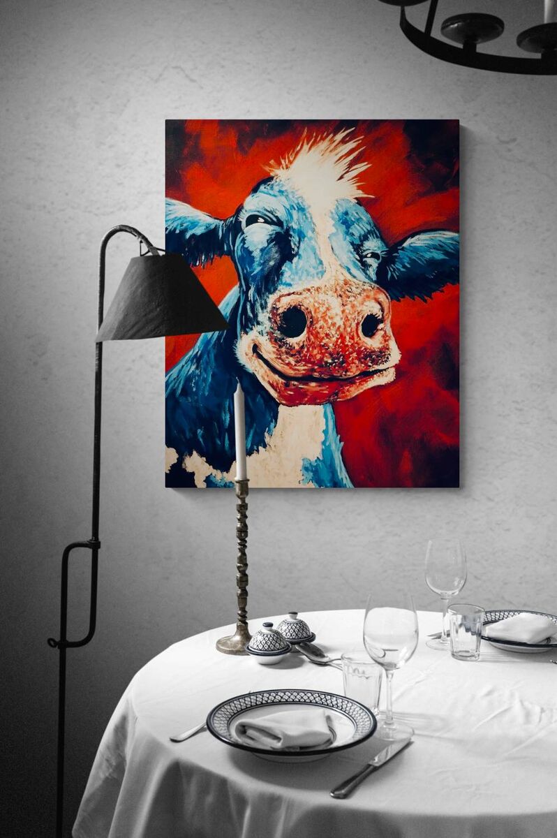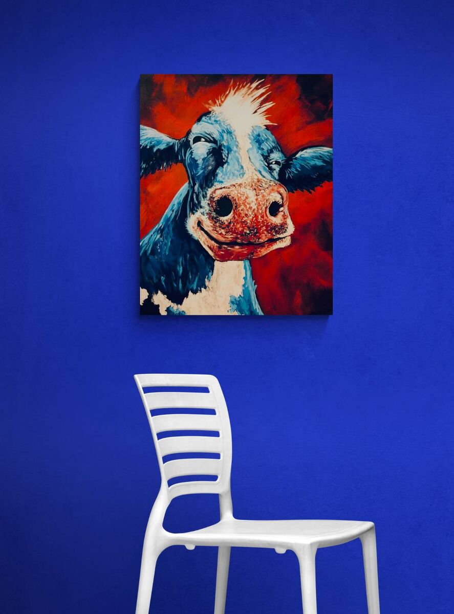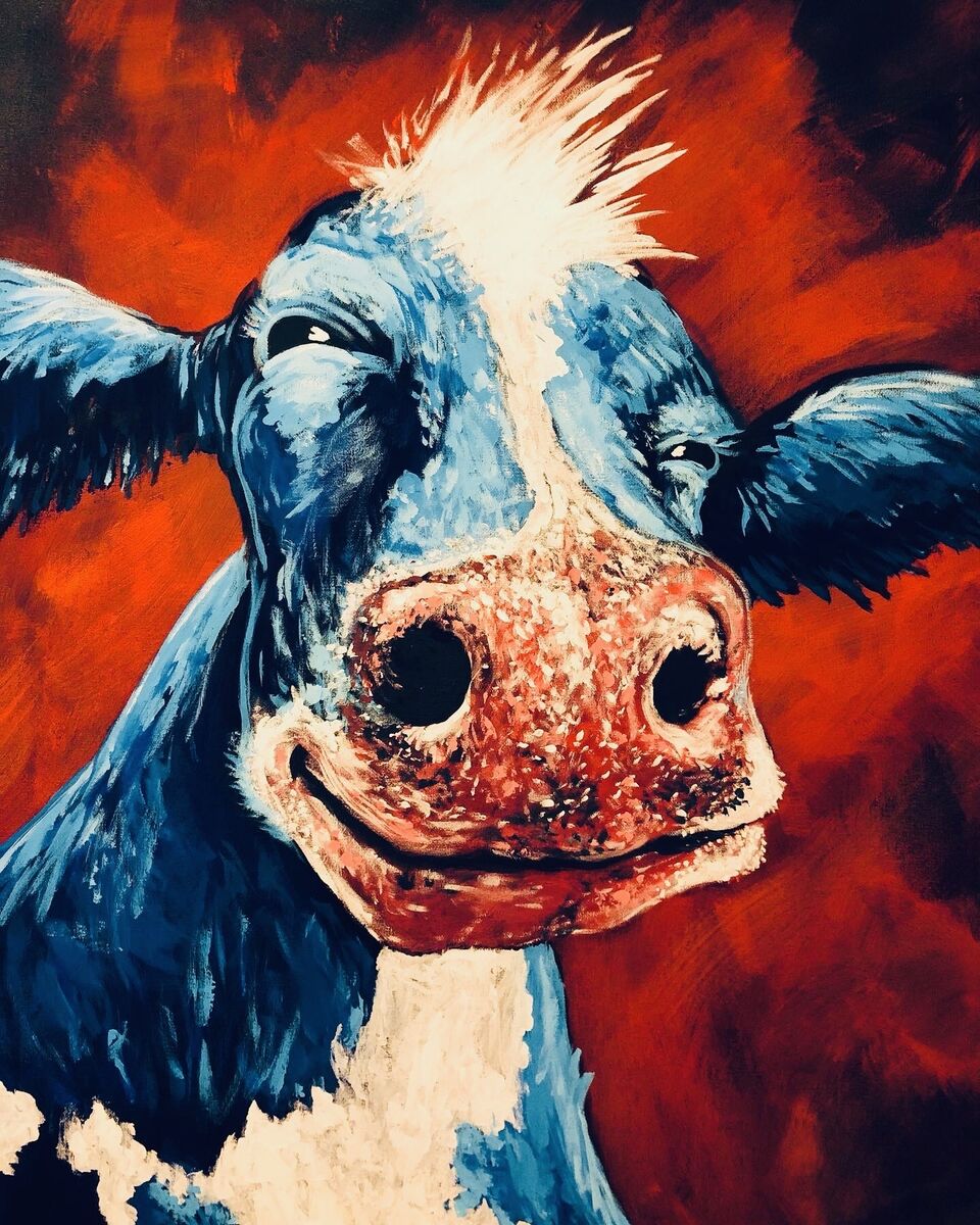 My first cow painting. Entered into my first art show and was awarded an honorable mention. Original was sold and hangs in Wisconsin, Thanks Sandy! 11x14 art prints are available in color or black and white.