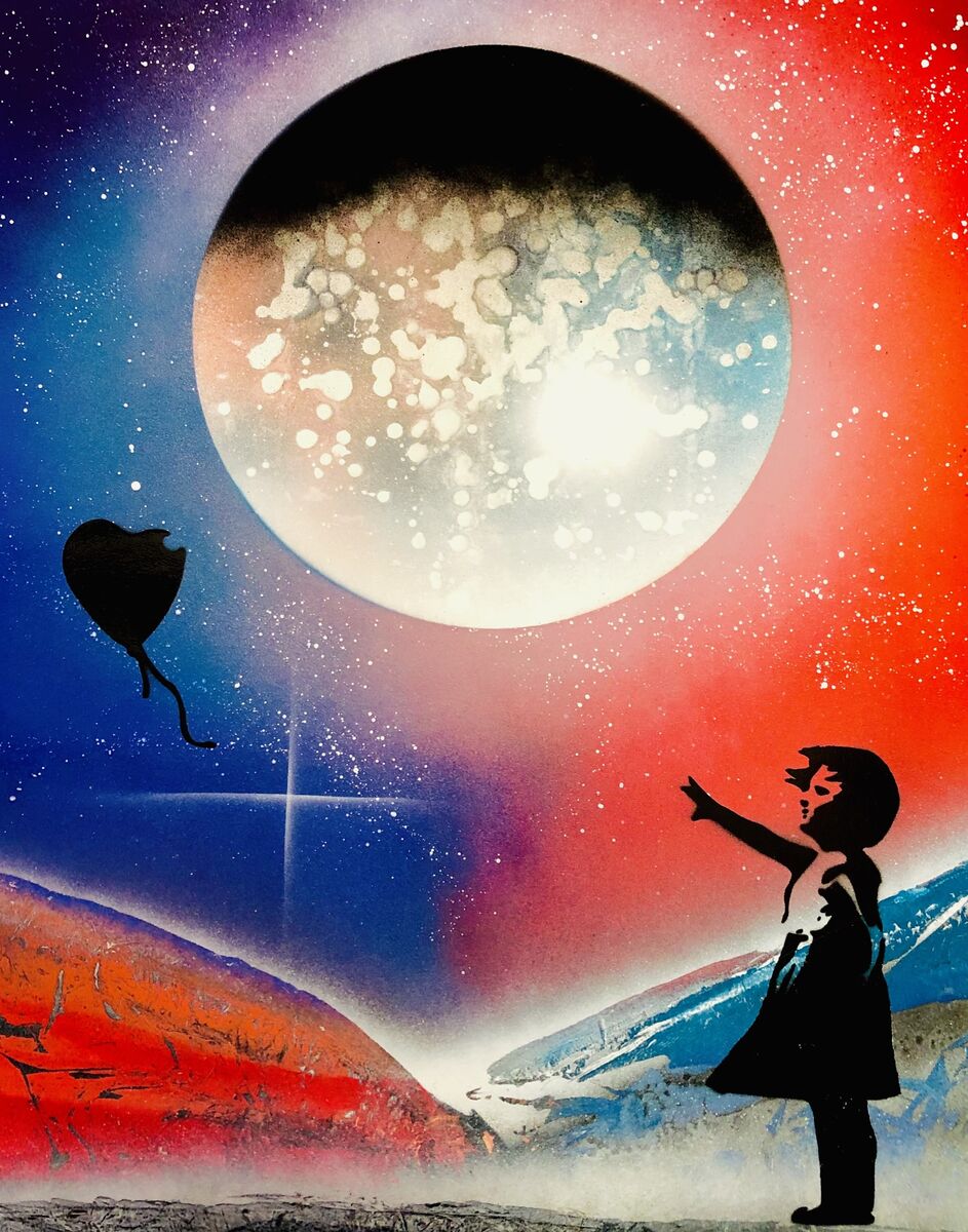 Banksy has been a huge inspiration to me and my artwork. Love splicing his iconic imagery and stencils into my own art. Original artwork has been sold. 11x14 art prints AVAILABLE!
