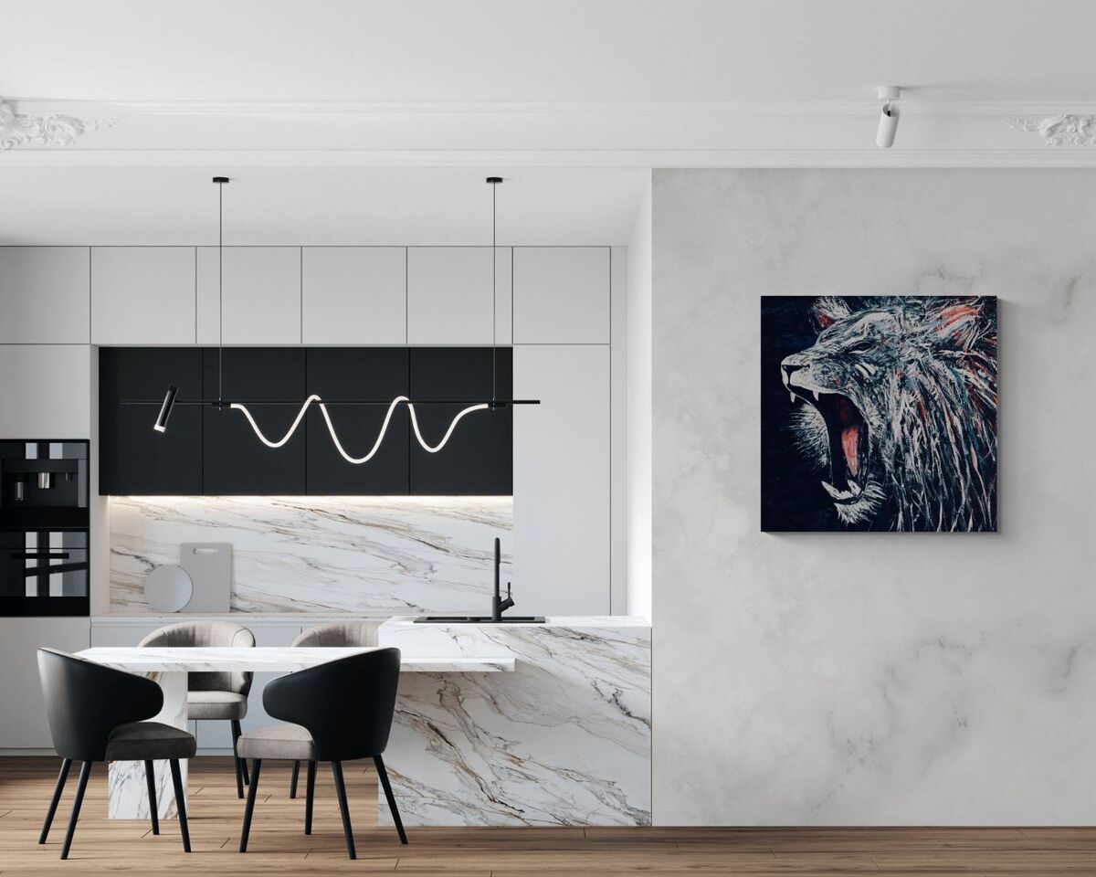 Lions dont concern themselves with the opinions of sheep! Canvas painting made entirely with spray paint. 11x14 art prints and T-shirts are vailable! Original Artwork purchased by my brother Jake!