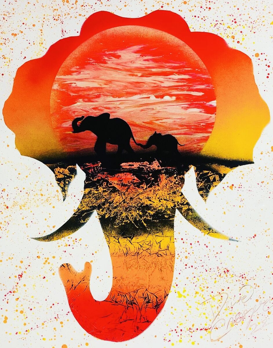 Spray painting featuring more Bansky stencils on top of my own custom landscape. Original is sold but 11x14 prints are available!