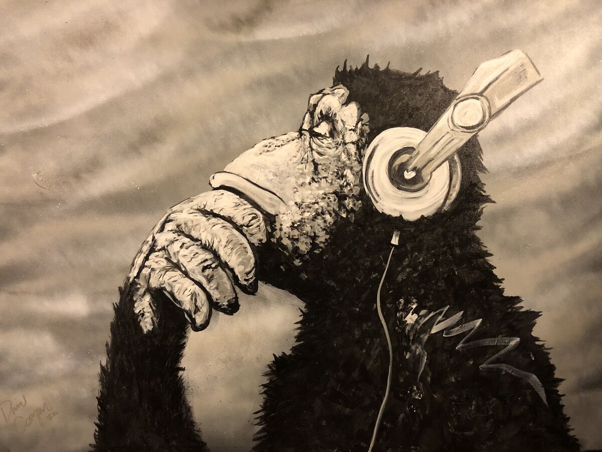 One of my first canvas paintings, made entirely with spray paint. I did use some brushes but only spray paint for the medium. This original painting hangs in my art studio and is one I plan to keep forever.