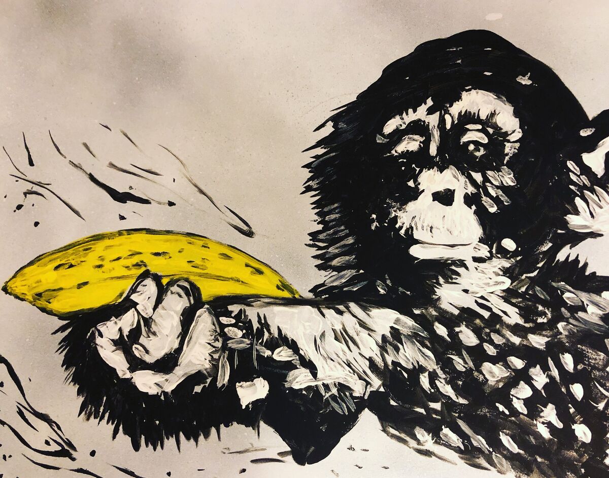 Banksy inspired canvas painting that I made prints of. Original was purchased by good friend Jimmy and now hangs in his office. These are 11x14 prints of that painting.