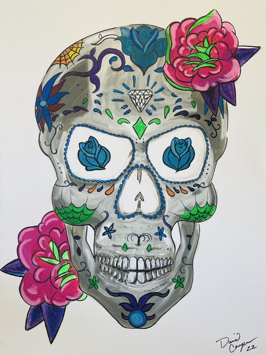 Sugar Skull painting made with acrylics and my first time using a paint pen for anything but signing prints. Original and 11x14 prints are AVAILABLE.