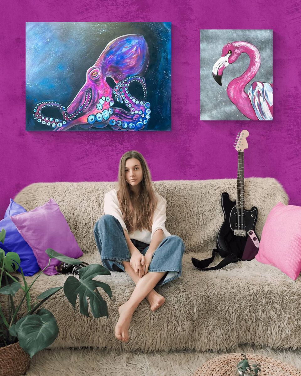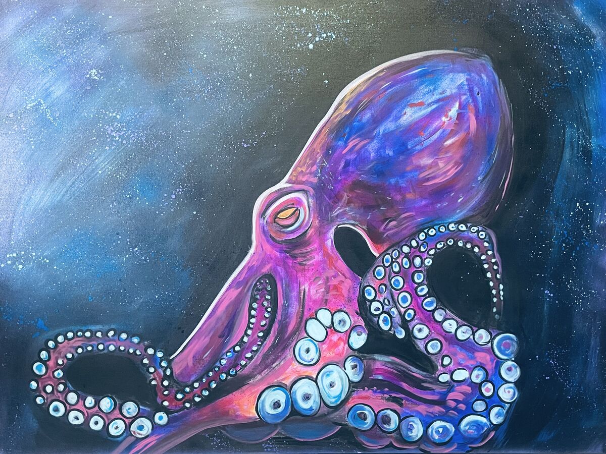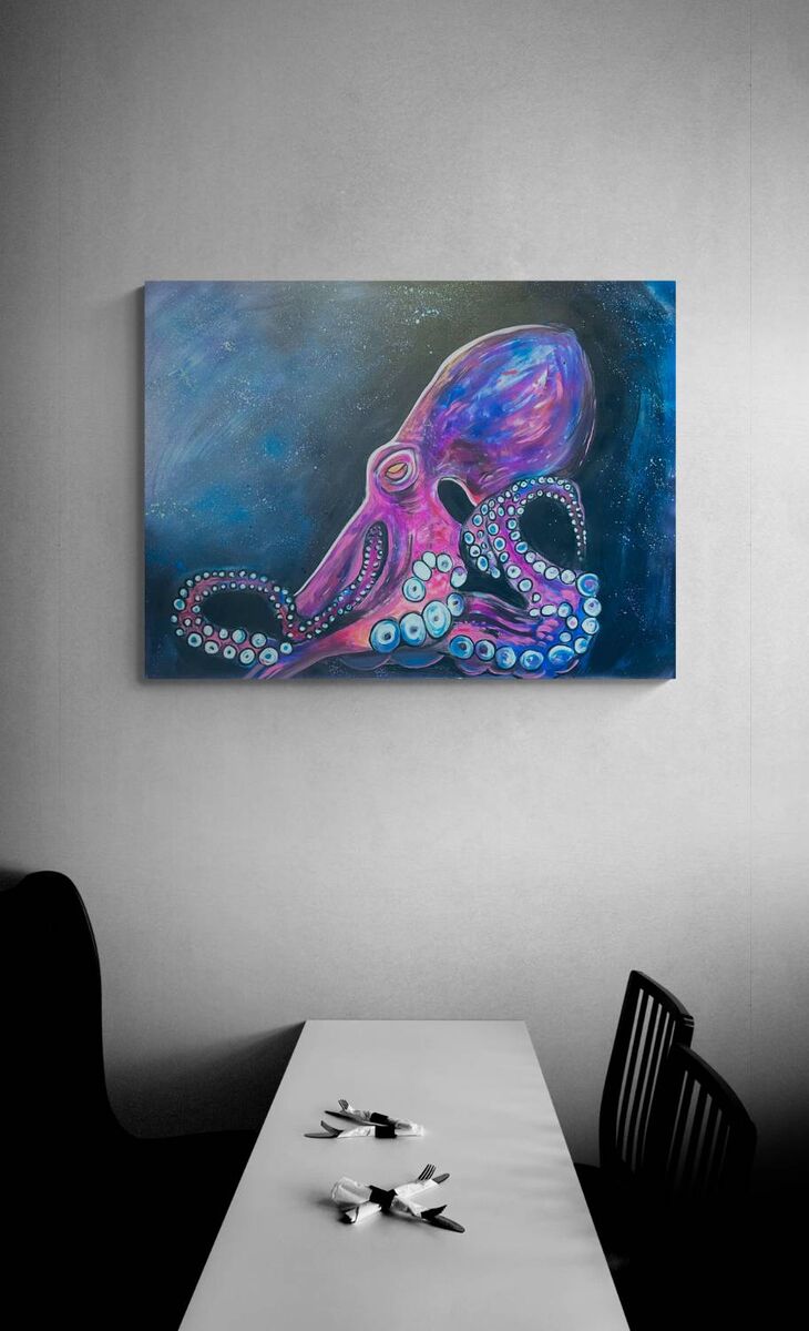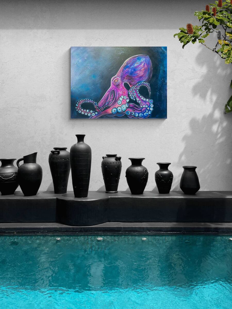 Original is sold. 11x14 prints are AVAILABLE. Inky was an octopus that lived in the National Aquarium of New Zealand. Inky escaped the aquarium through the drainage slithering and out to the sea. Made with Spray paint and Acrylics