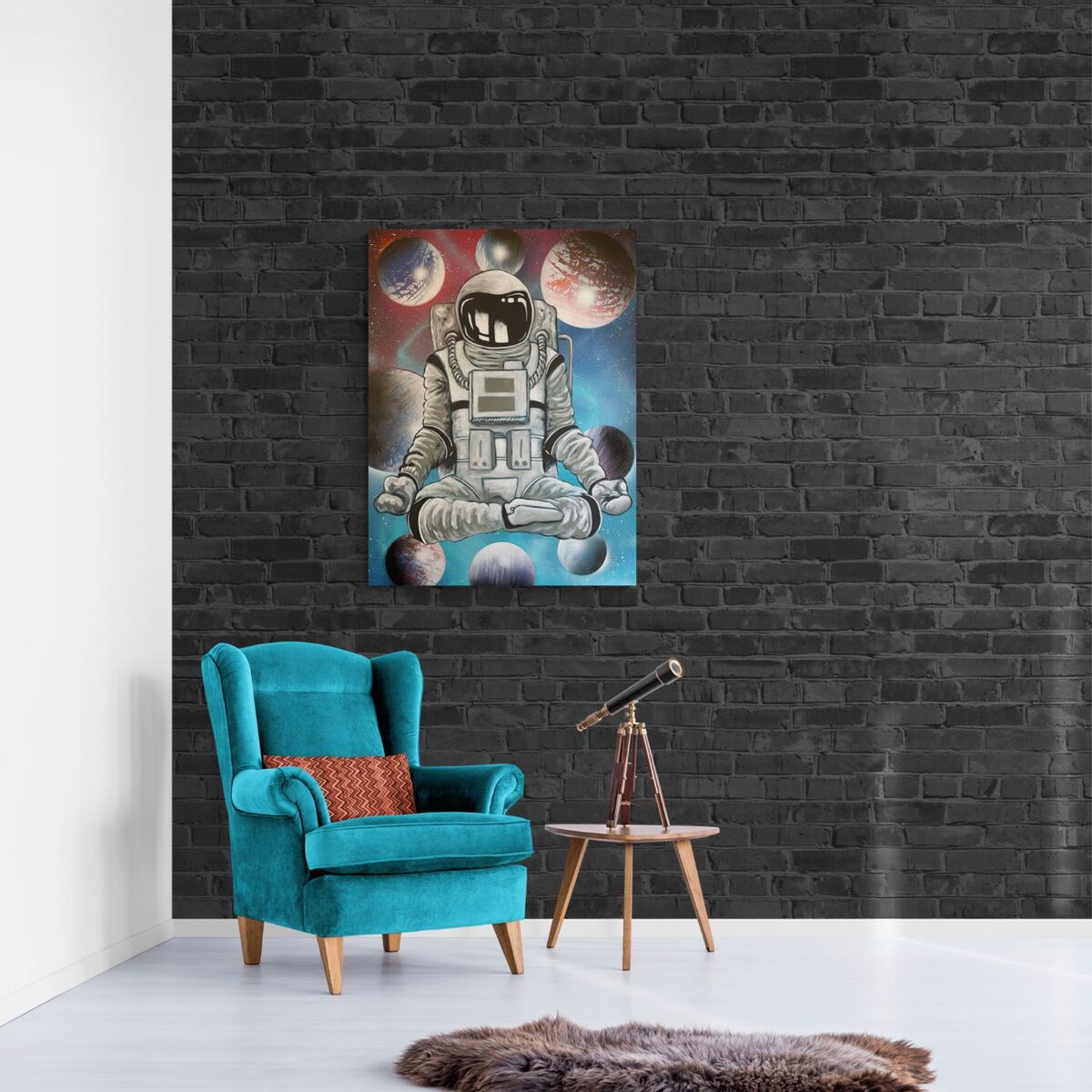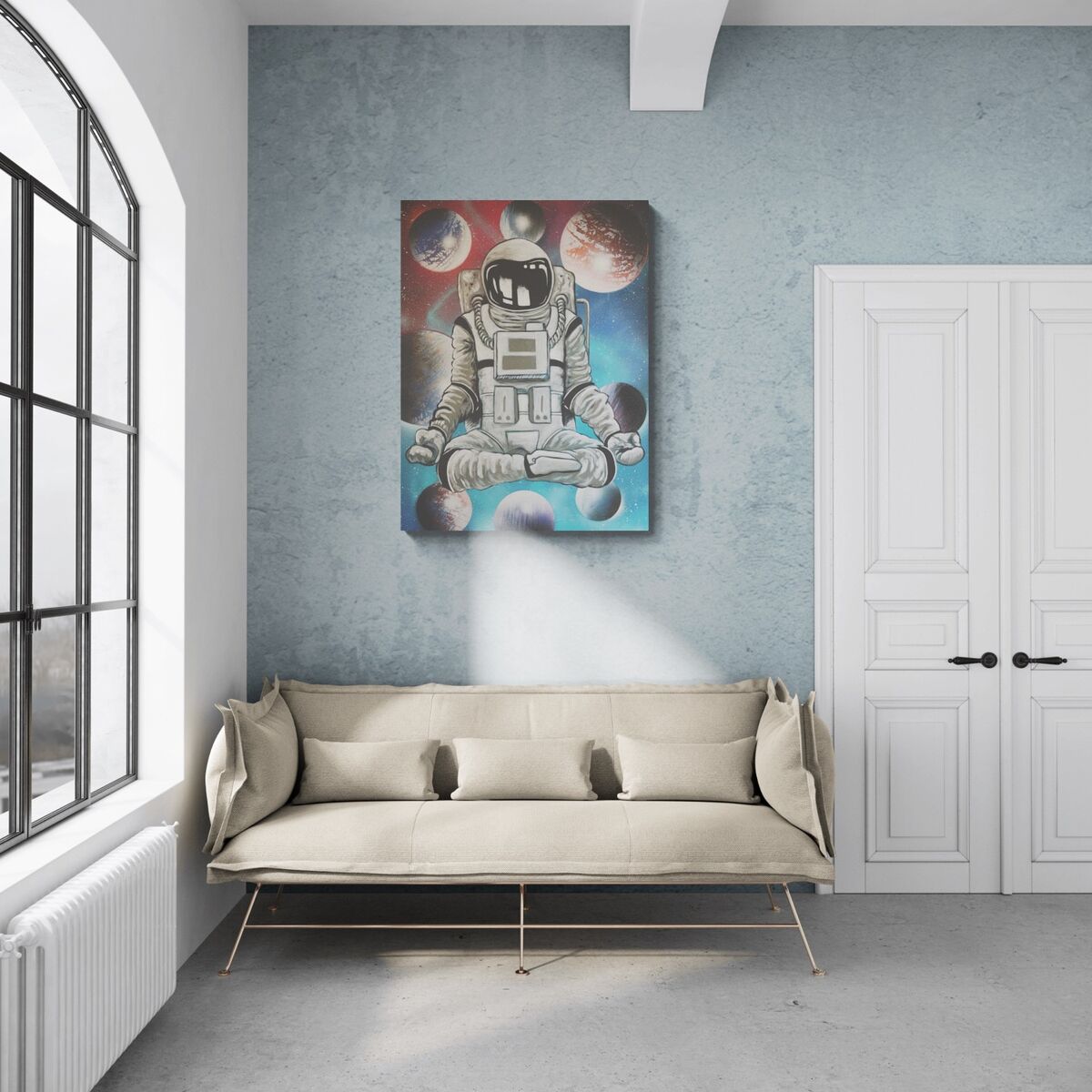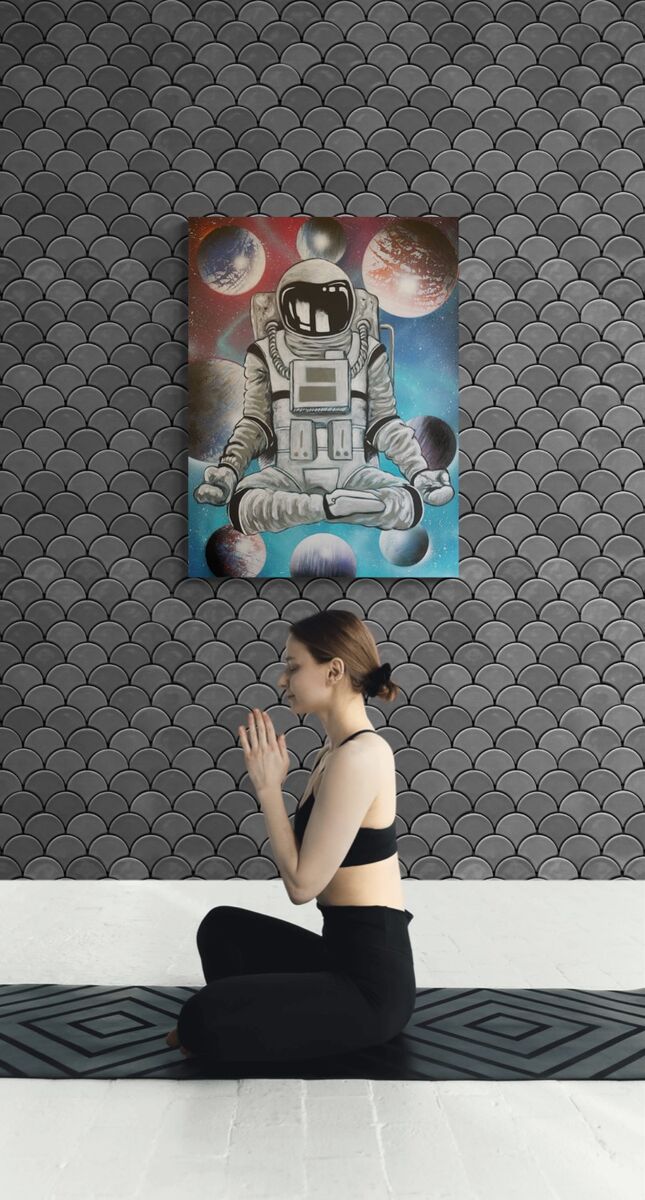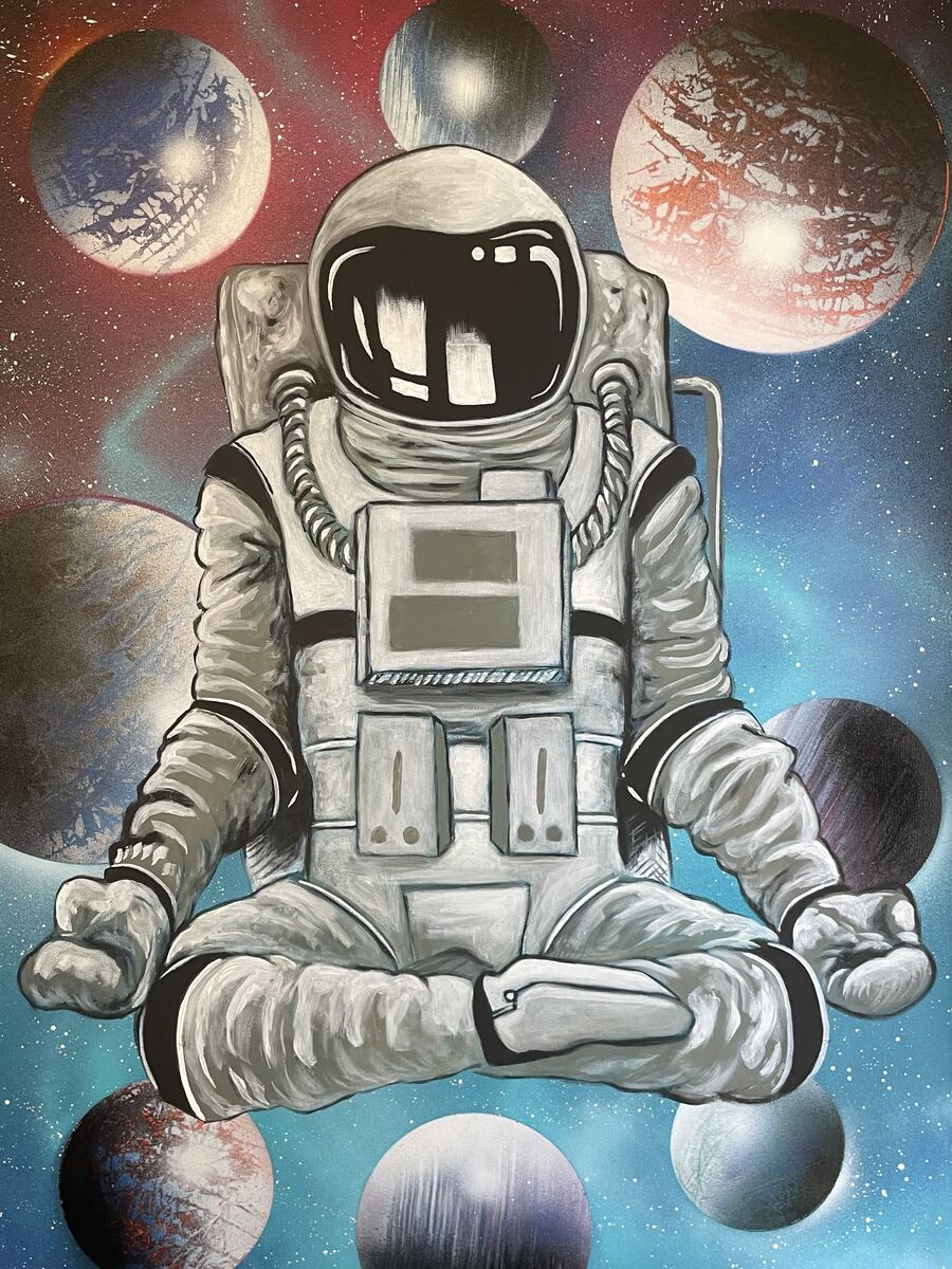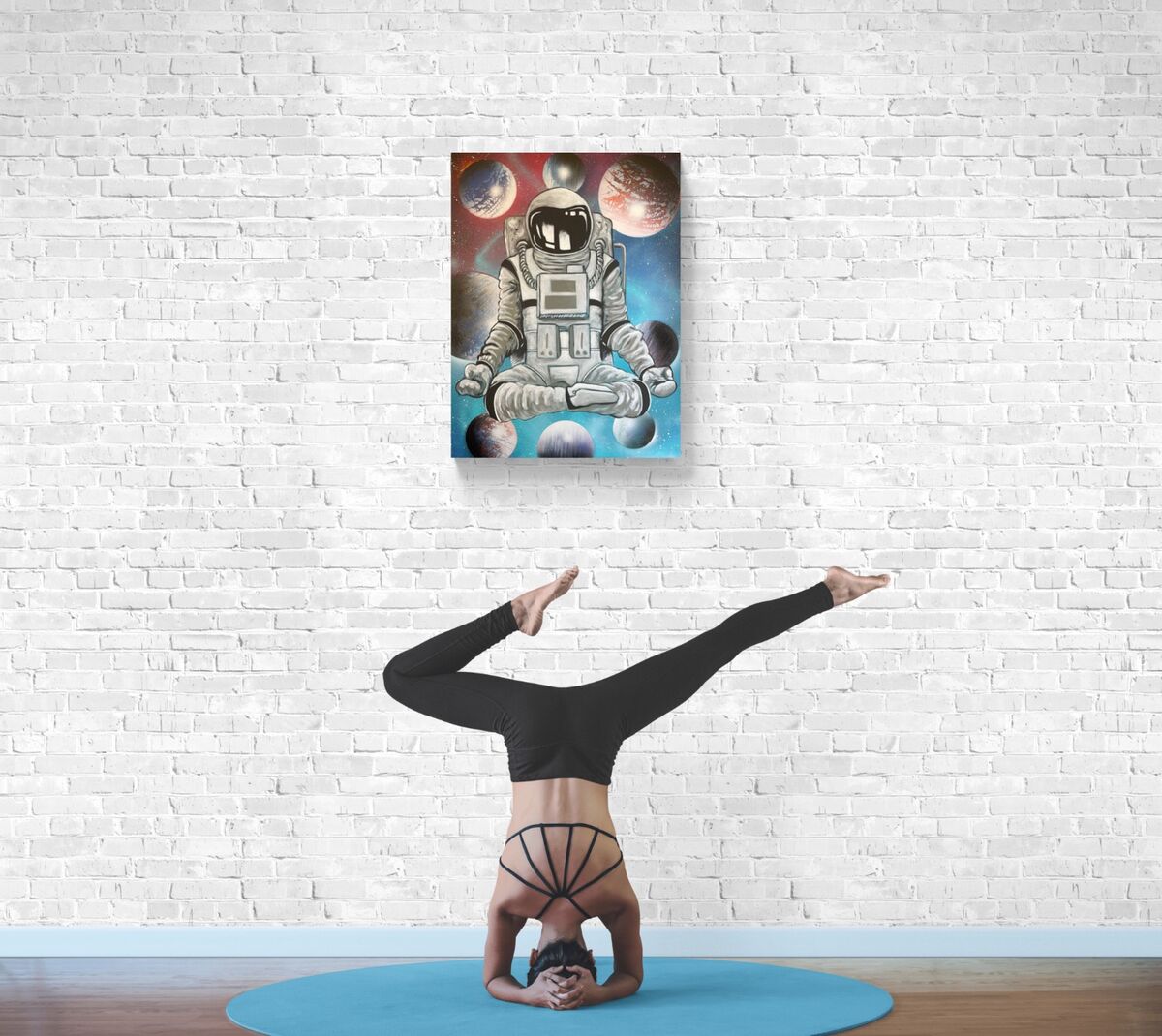 Mixed media canvas artwork. Astronaut doing yoga in outer space… what’s not to love! Namaste!