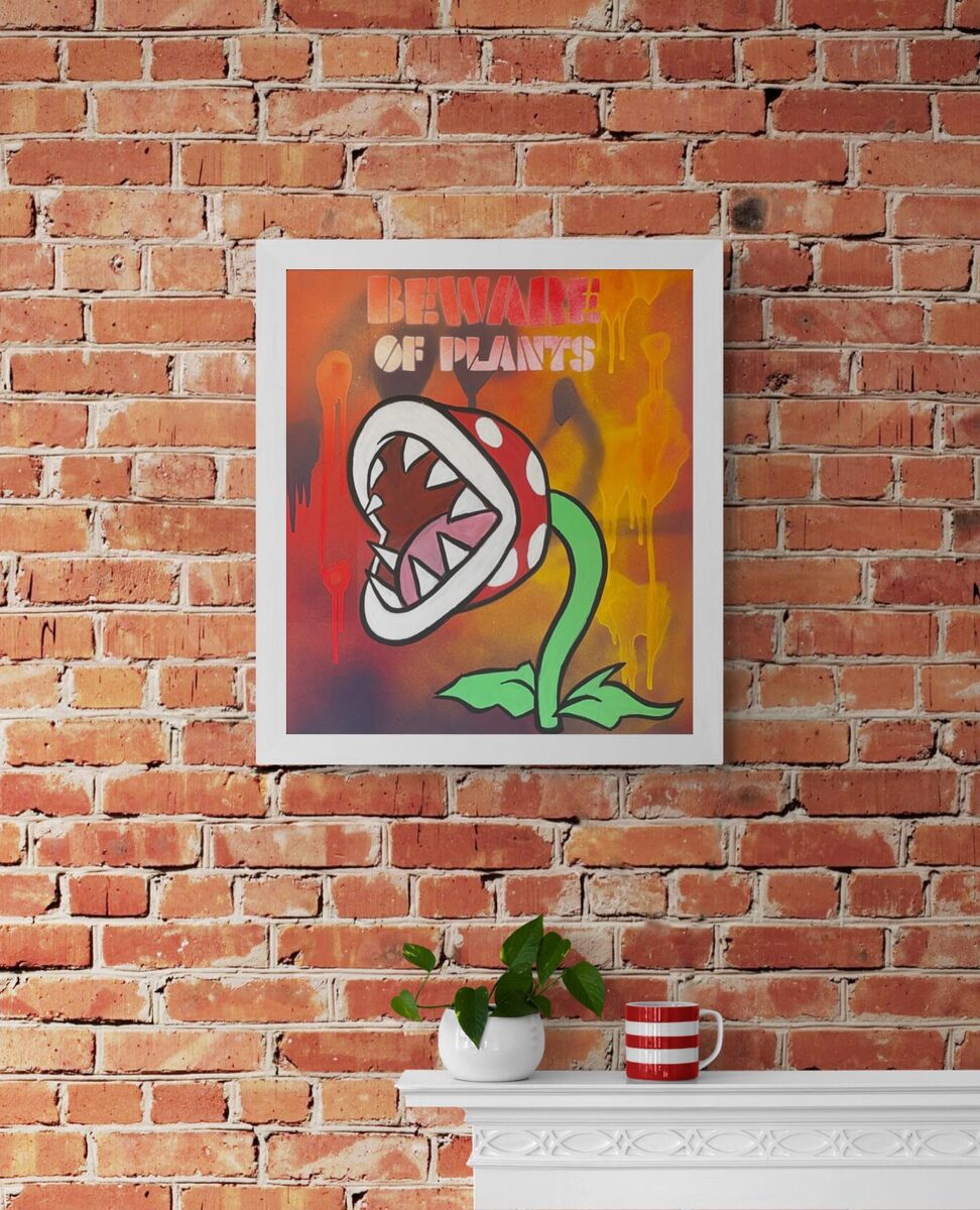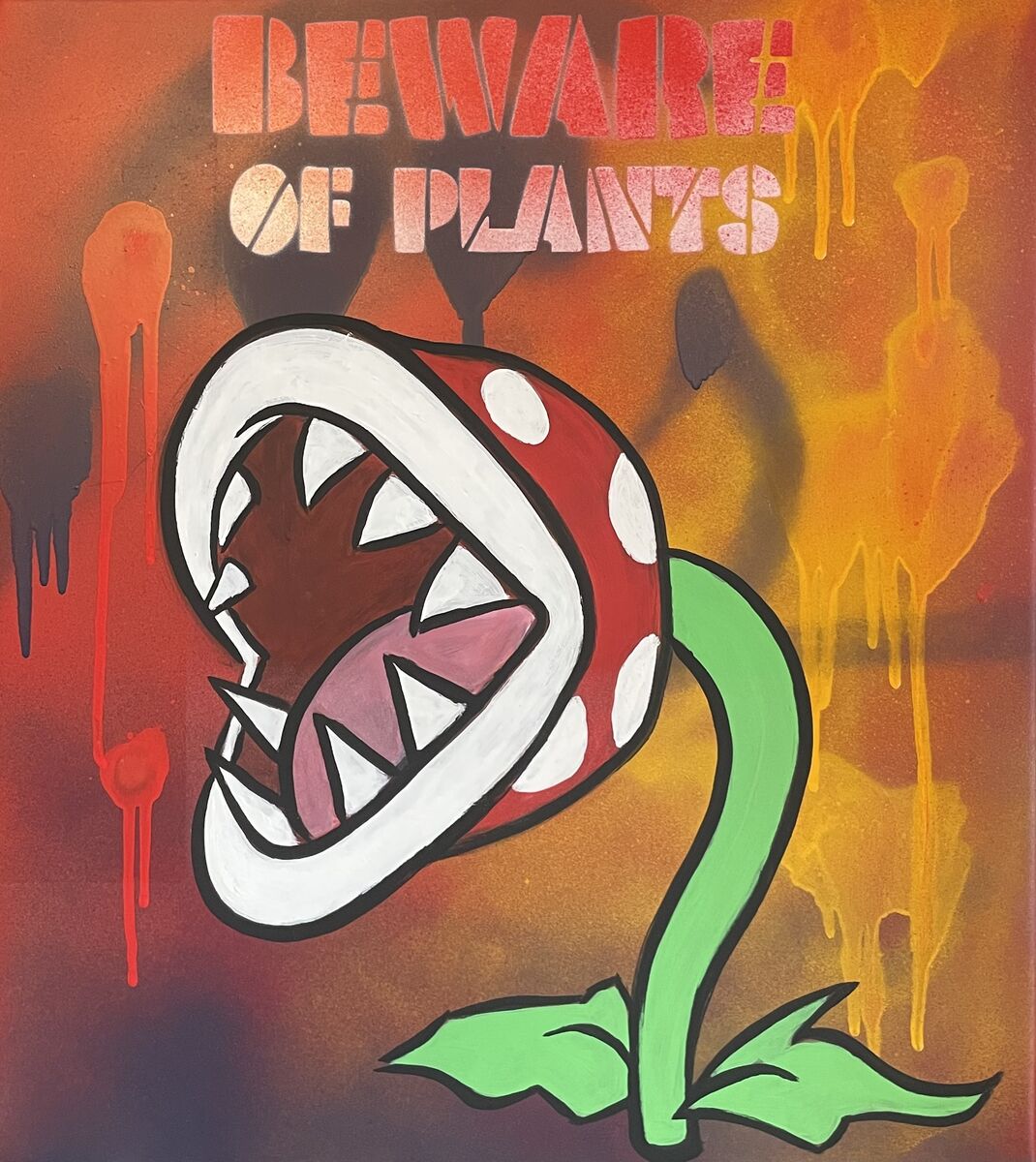 SOLD This painting is my first on metal! So thus one is heavy Id rather not ship it.. but I been on a Mario kick and I thought this would look cool near a garden