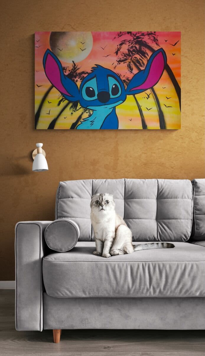 Stitch, the beach, palm trees