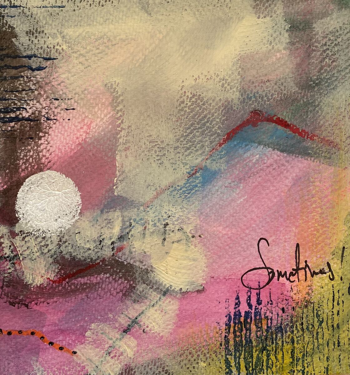 Acrylic and oil pastels on paper.