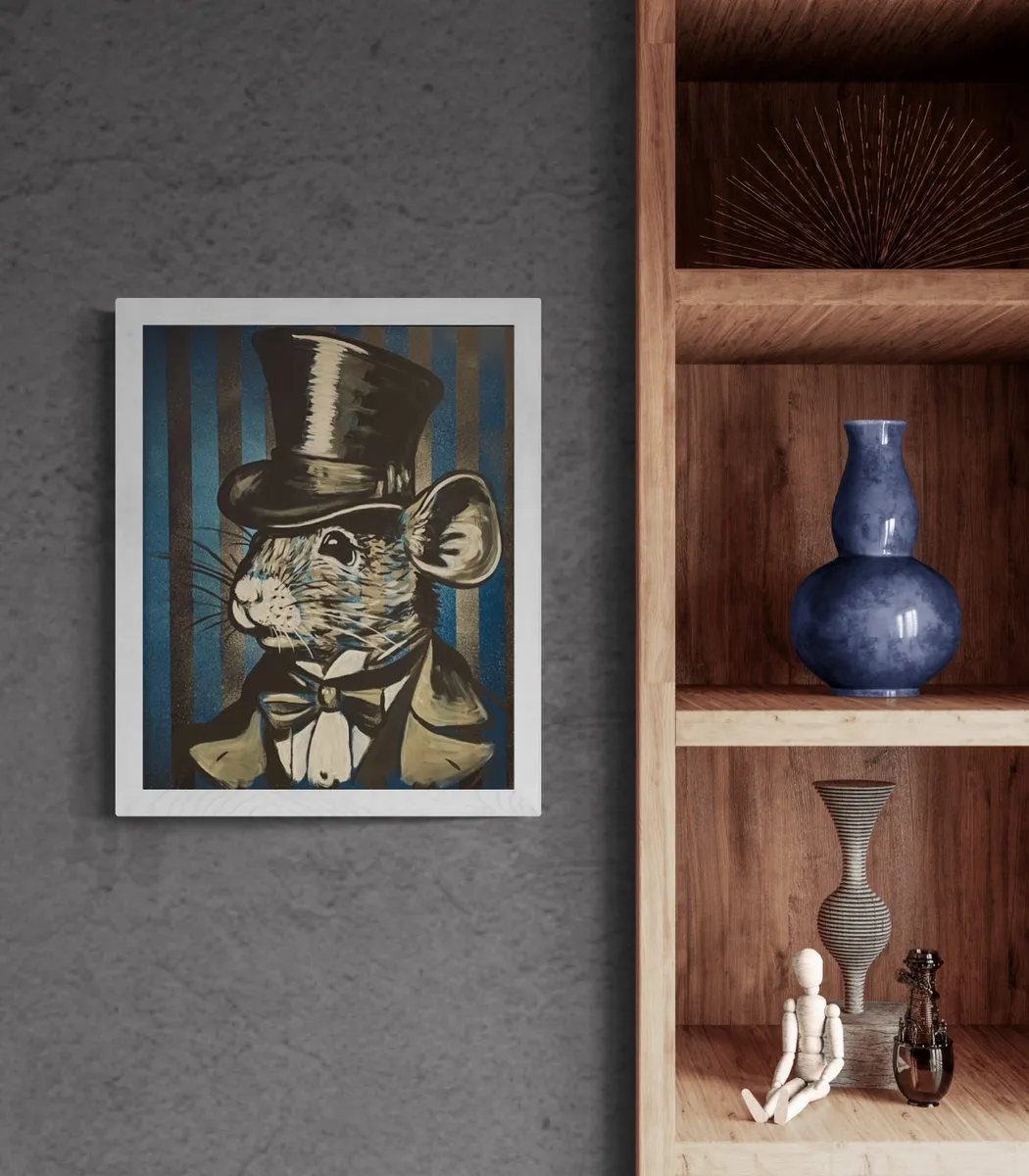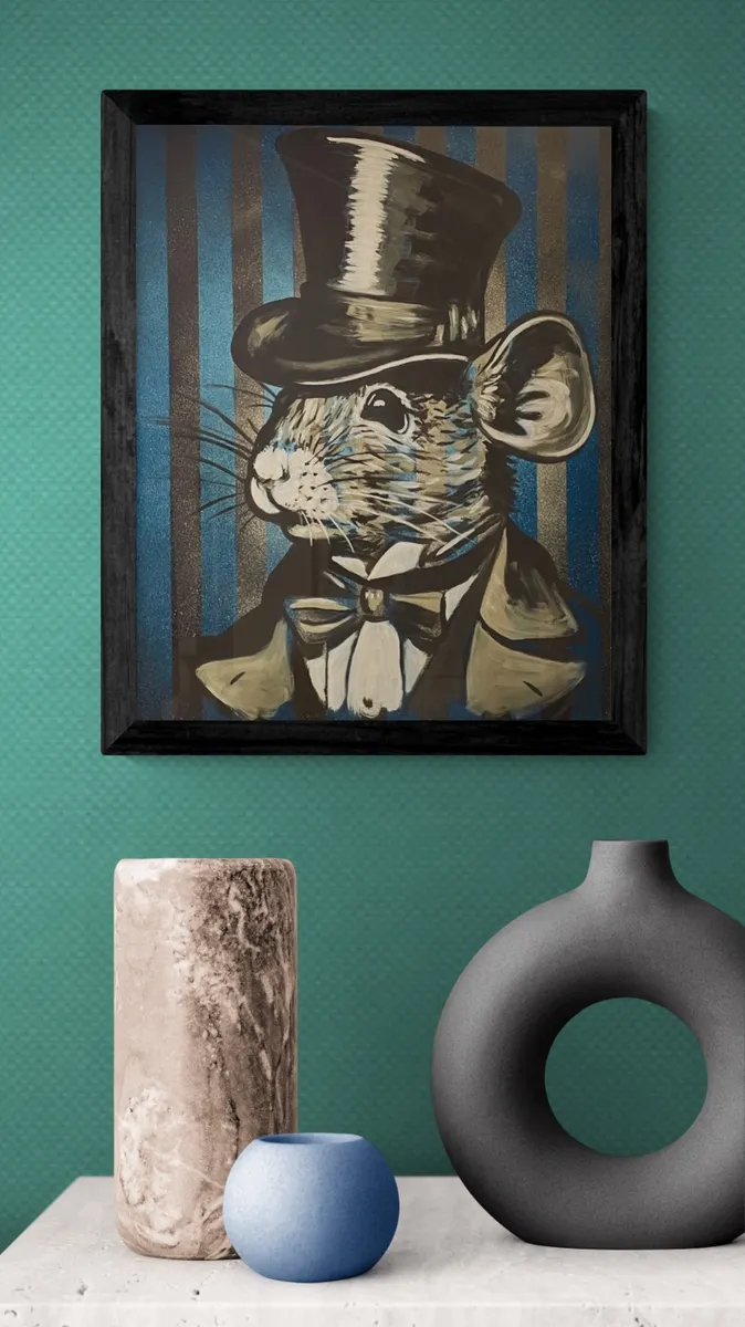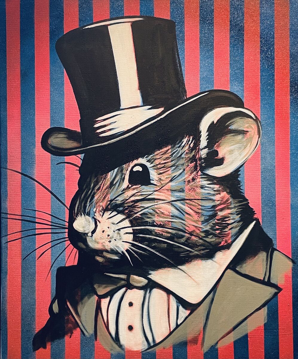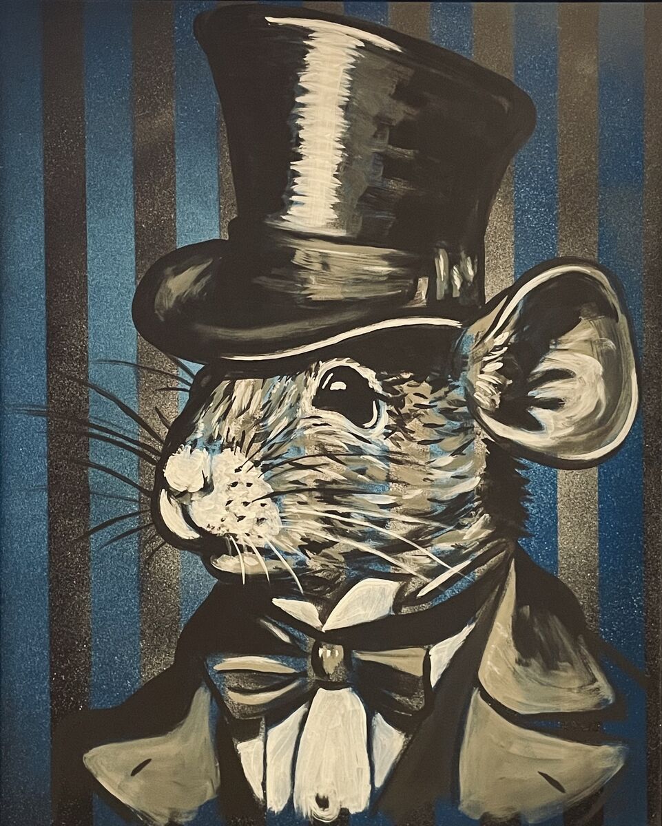 3rd painting in my latest series of top hat animals Stuart Little has nothing on this dude